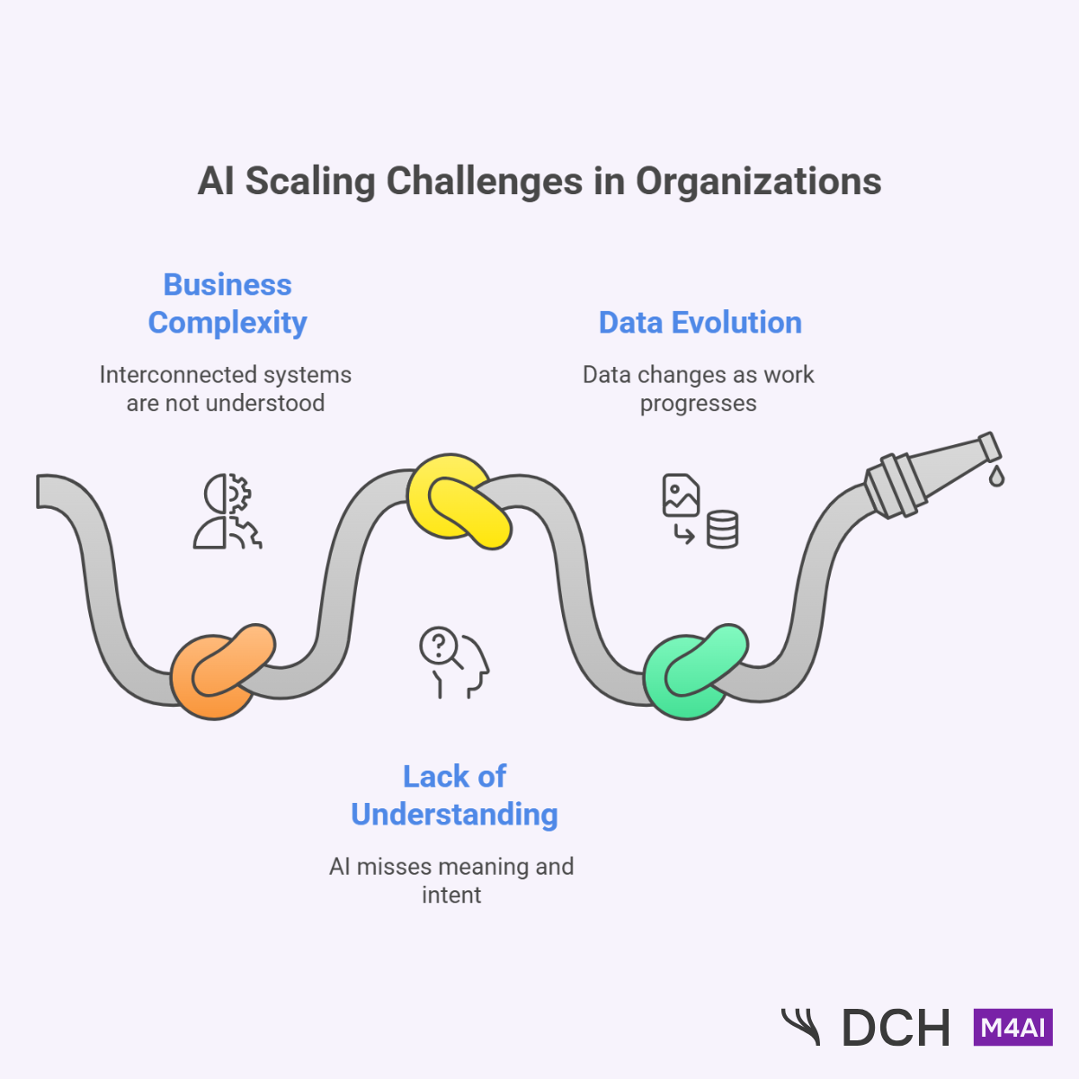 Traditional AI sees none of this. It processes text and numbers. It does not understand meaning, relationships, dependencies, or intent. That’s why impressive prototypes so often collapse in real-world environments: the AI simply doesn’t know how the business works.